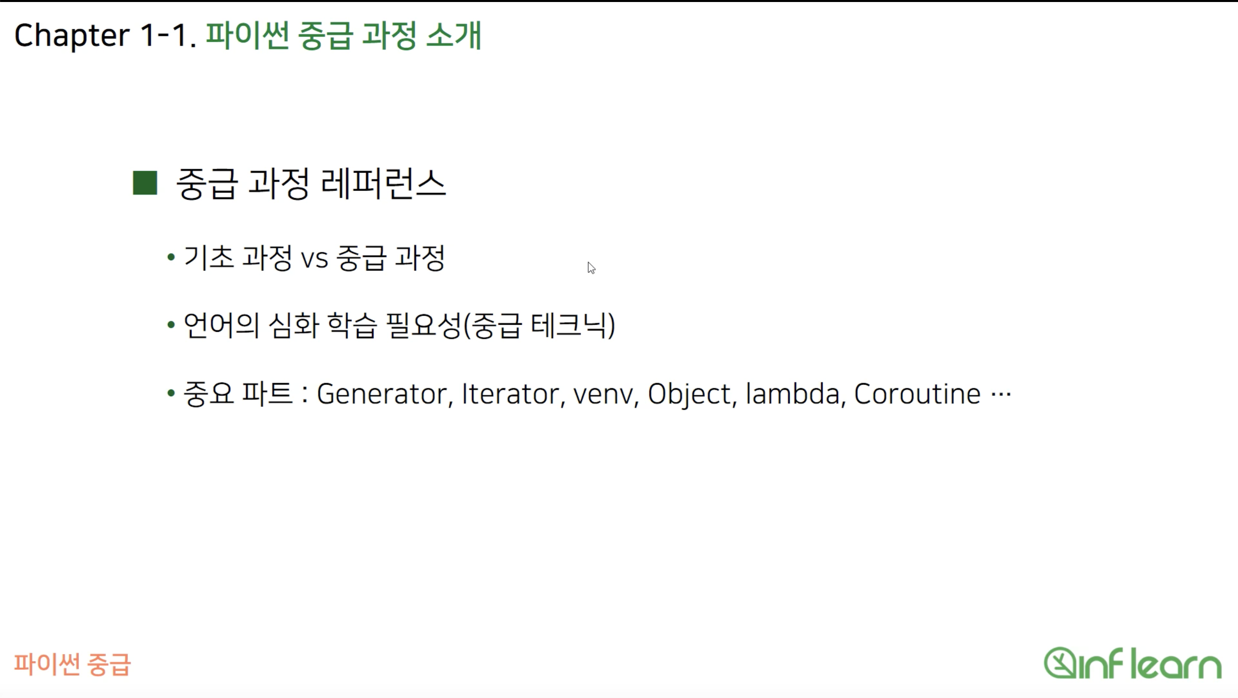 제일 처음으로 파이썬 중급 강의를 소개하였어요.