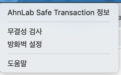 맥에서는 그 중 AhnLab Safe Transaction 이라는 프로그램을 설치하게 되는데요,