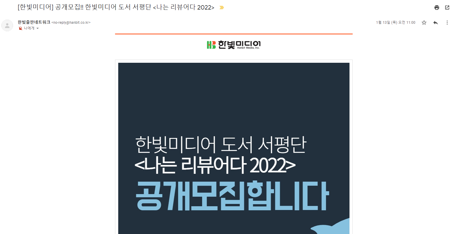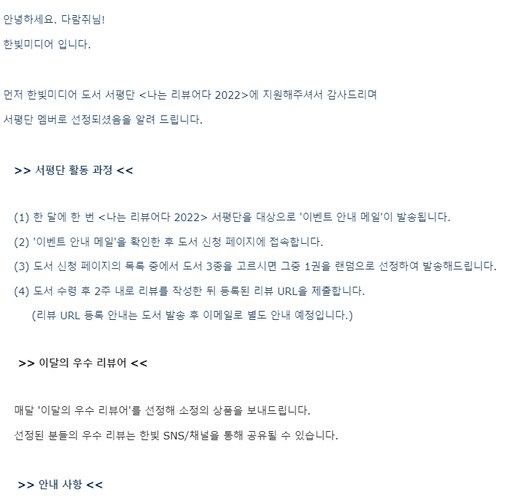 그러던 중 올 해 2022년에도 한빛미디어에서 나는 리뷰어다 2022를 모집한다고 지난 1월 13일에 메일로 받았어요~