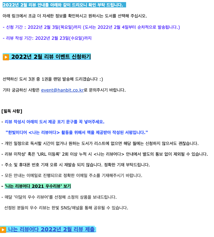 지난 글에서 한빛미디어 나는 리뷰어다 2022 도서 서평단에 합격한 후기를 작성했었어요.