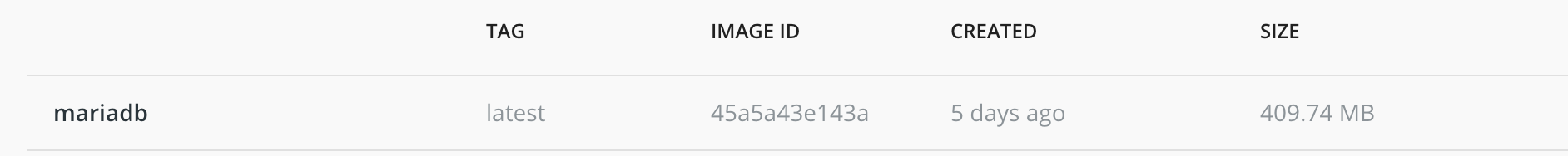 mariadb latest 45a5a43e143a 5 days ago 410MB