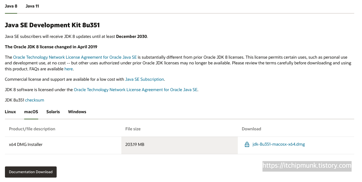 오라클 JDK 는 Oracle SE JDK 설치 링크에서 macOS x64 DMG Installer 를 설치했습니다.