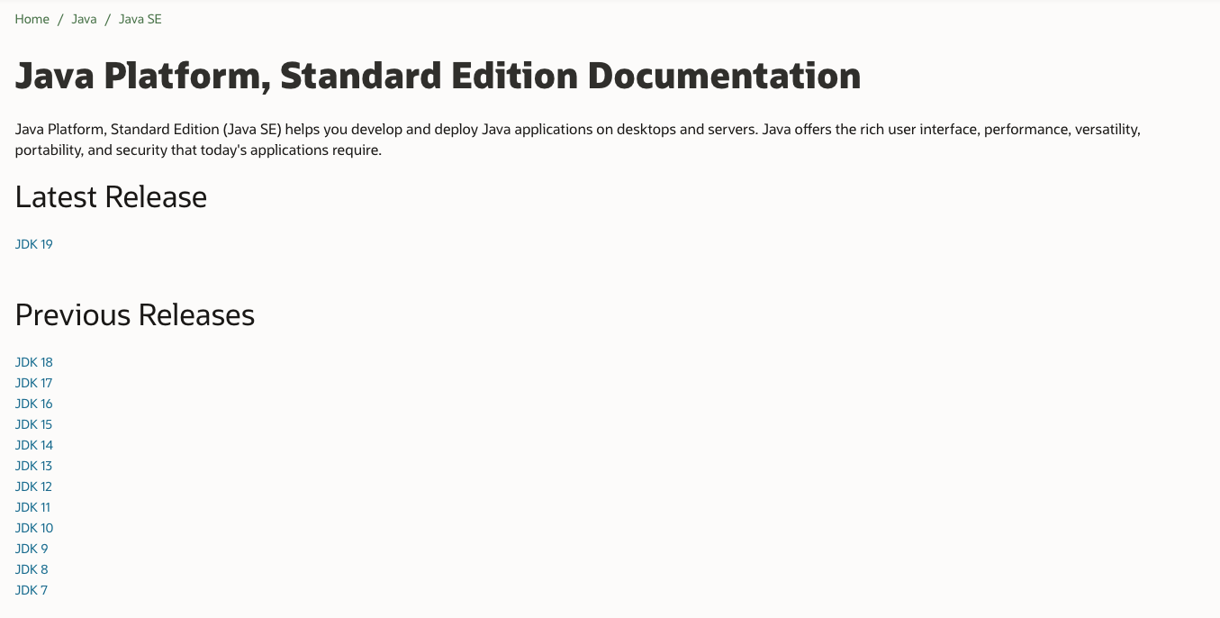 링크 : https://docs.oracle.com/en/java/javase/index.html