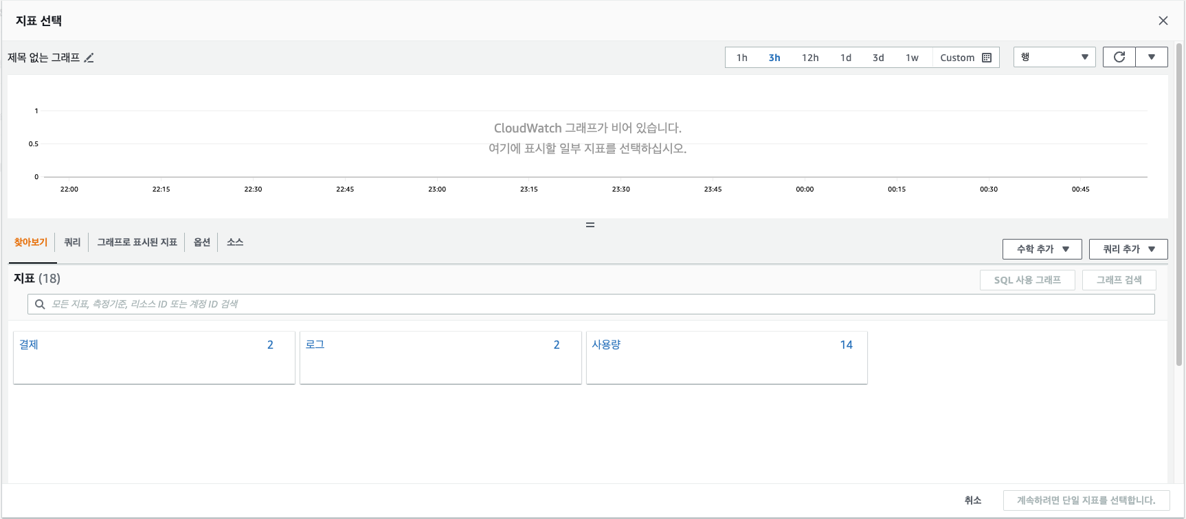 팝업 창 하단에 있는 지표 선택 버튼을 누릅니다.
