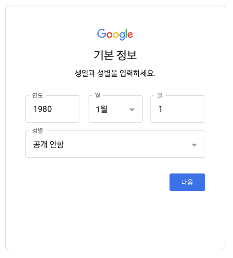 구글 계정 회원가입 절차도 간편합니다.