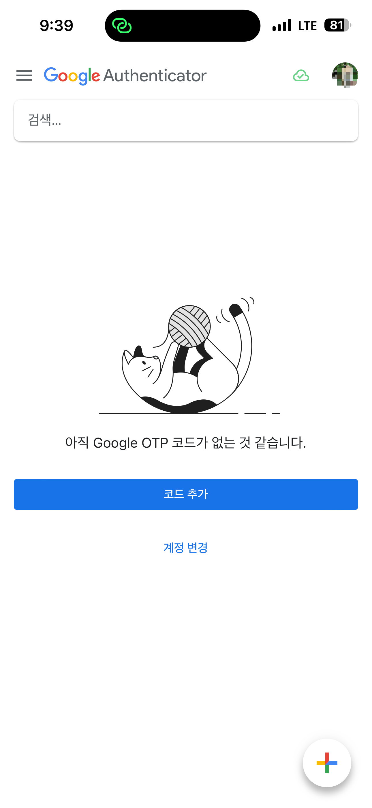 모바일 기기에서 아래처럼 구글 계정 로그인 후 '코드 추가' 버튼을 누릅니다.