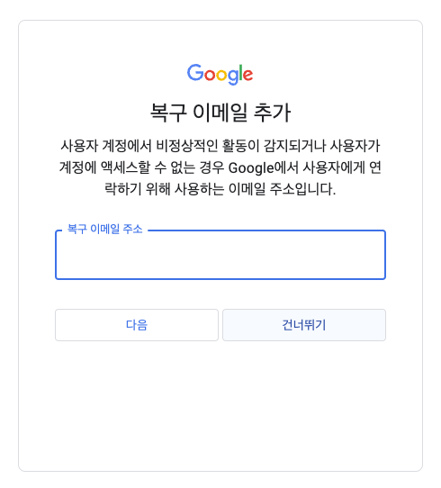 비밀번호 입력을 마치면 복구 이메일을 추가합니다.