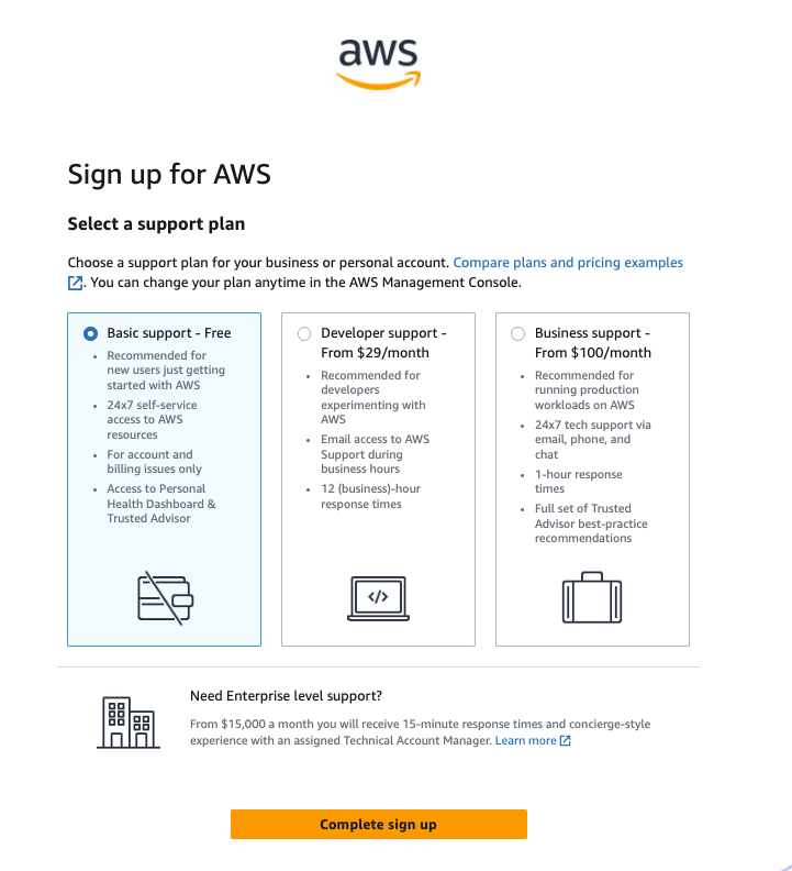 AWS 회원 가입을 마칩니다.