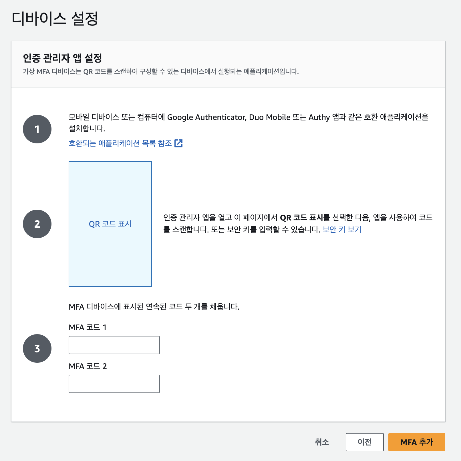 MFA 설정 방법은 위와 동일합니다.