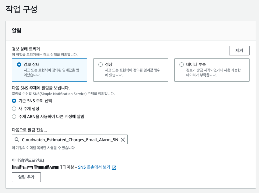 Cloudwatch 결제 알람 경보를 생성합니다.
