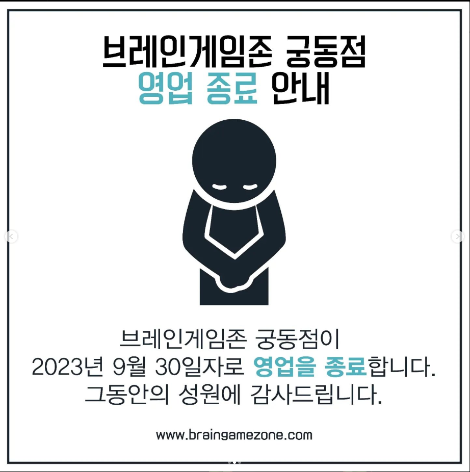브레인게임존 궁동점이 9월 30일자로 영업을 종료한다고 합니다.