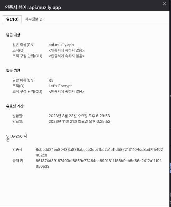 웹 페이지에서 인증서를 조회한 결과 역시나 만료일이 지났습니다.