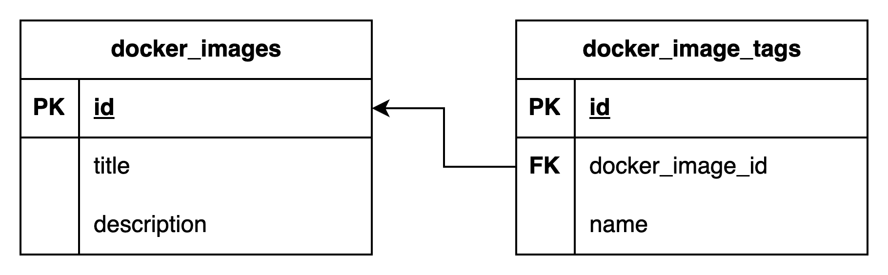 도커 이미지 테이블과 태그 테이블이 FK 관계로 연결되어 있습니다.